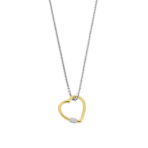 This TI SENTO gold-plated heart necklace 34023SY/60 flaunts a large gold-plated heart shape with a tiny pavé detail. The necklace is crafted from 9...