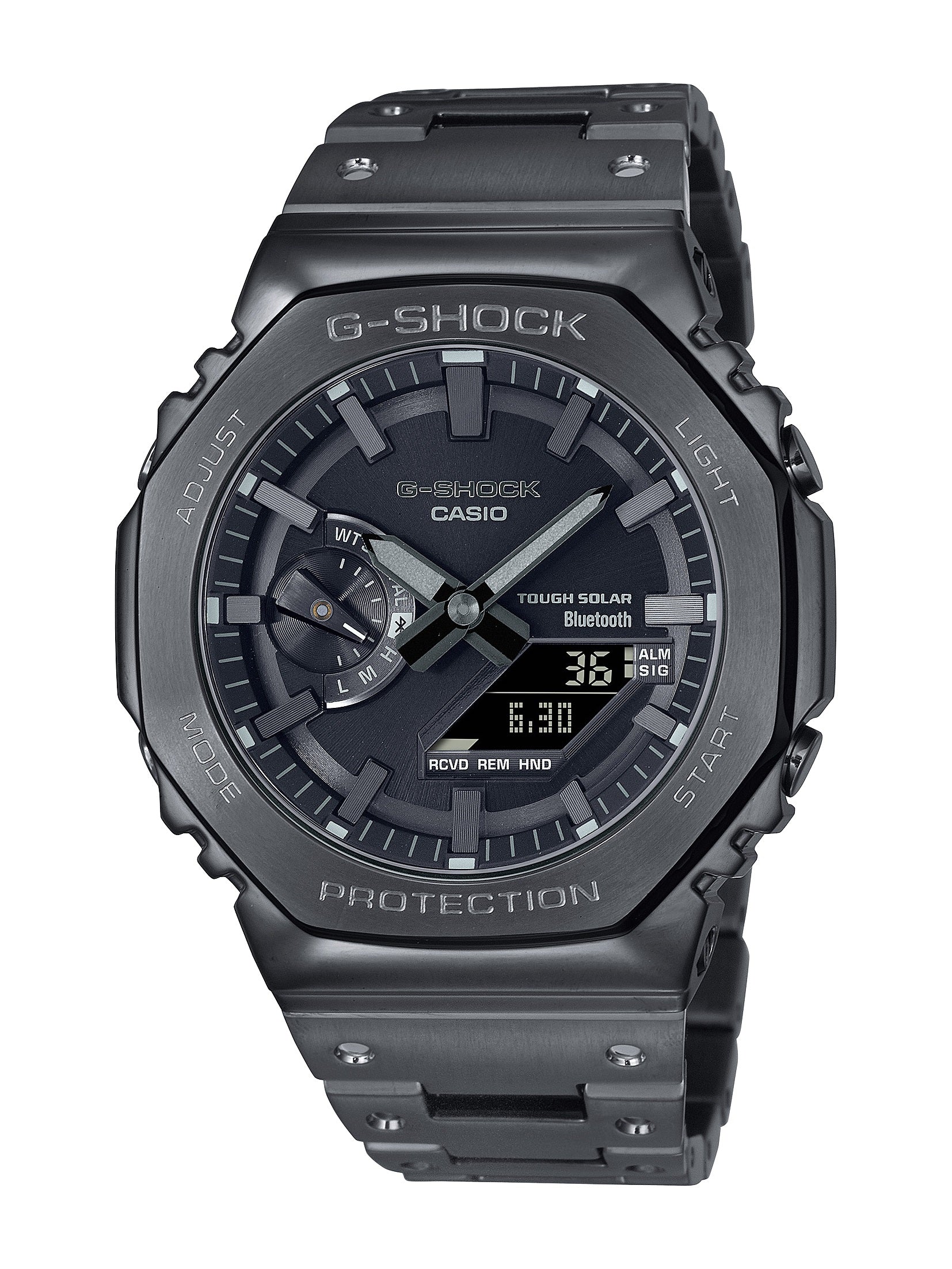 Luxe full-metal construction with a screw-back case, bezel, and band crafted in stainless steel creates a streamlined, minimalist design, while protecting the module from impact when dropped. We take it way back with the octagonal bezel and dimpled band design of the original from 1983, all done in metal.