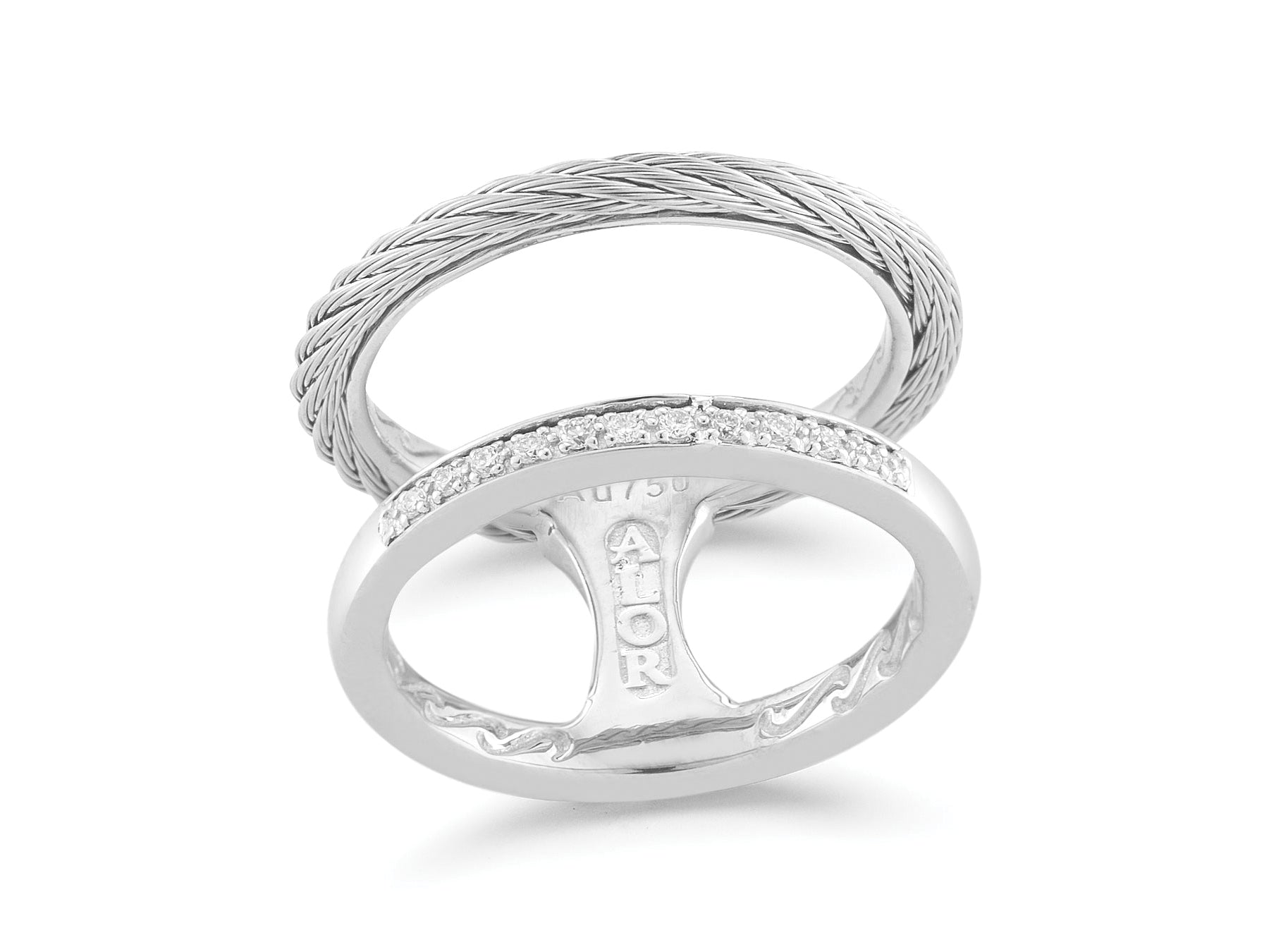 Alor Grey cable, 18 karat White Gold, 0.09 total carat weight Diamonds and stainless steel. Imported.