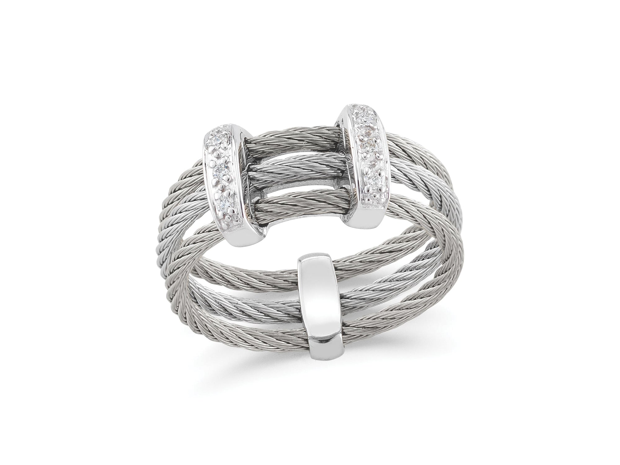 Alor Grey cable, 18 karat White Gold, 0.05 total carat weight Diamonds and stainless steel. Imported.