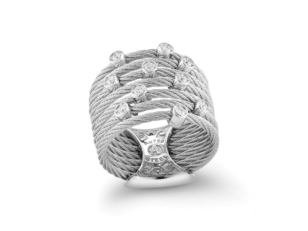 Alor Grey cable, 18 karat White Gold, 0.22 total carat weight Diamonds and stainless steel. Imported.