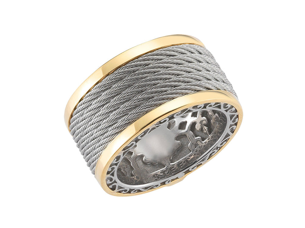 Alor 18 karat Yellow Gold, stainless steel and stainless steel Cable 5 row 1.6mm. Imported.