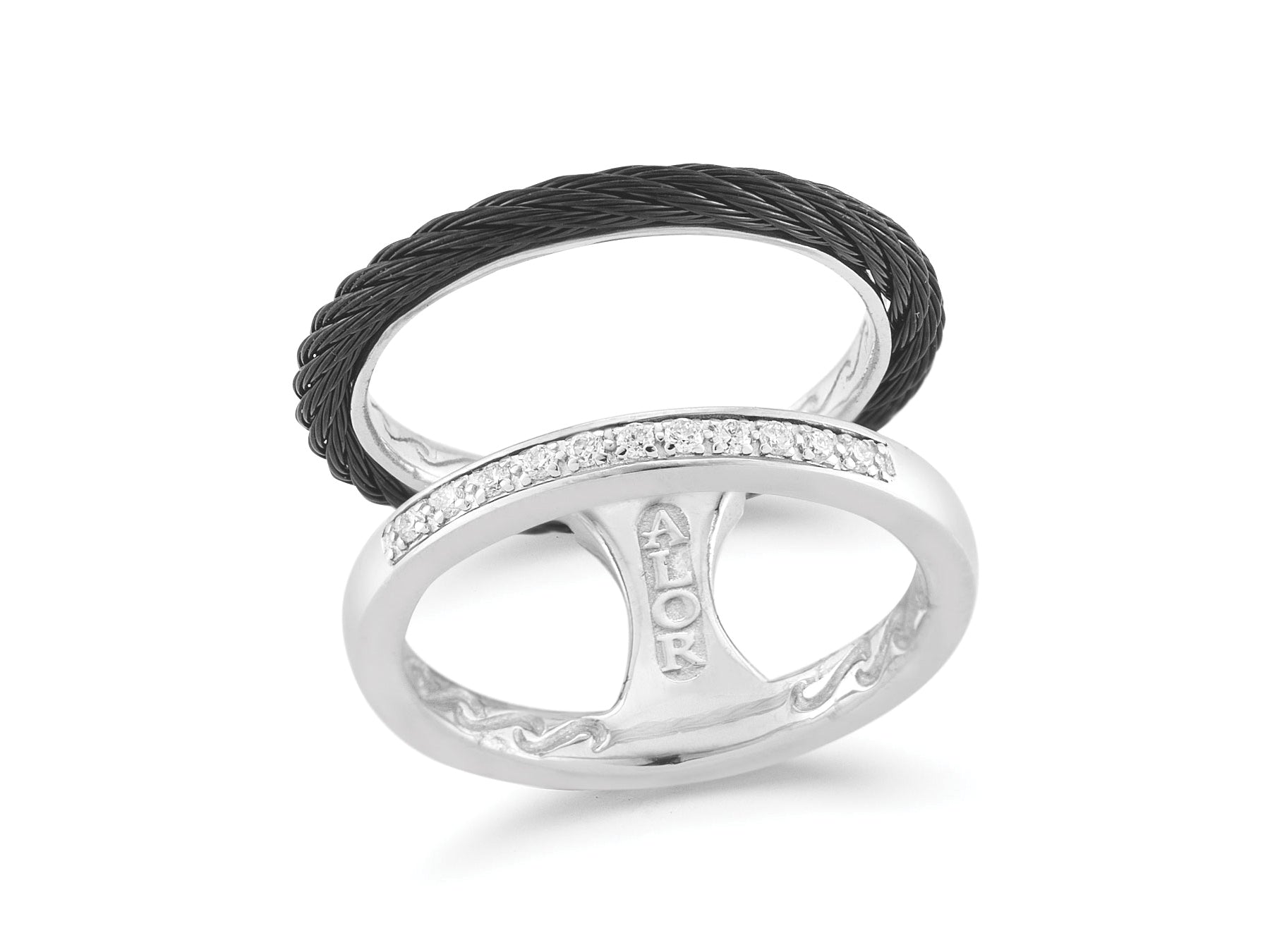 Alor Black cable, 18kt White Gold, 0.09 total carat weight Diamonds and stainless steel. Imported.