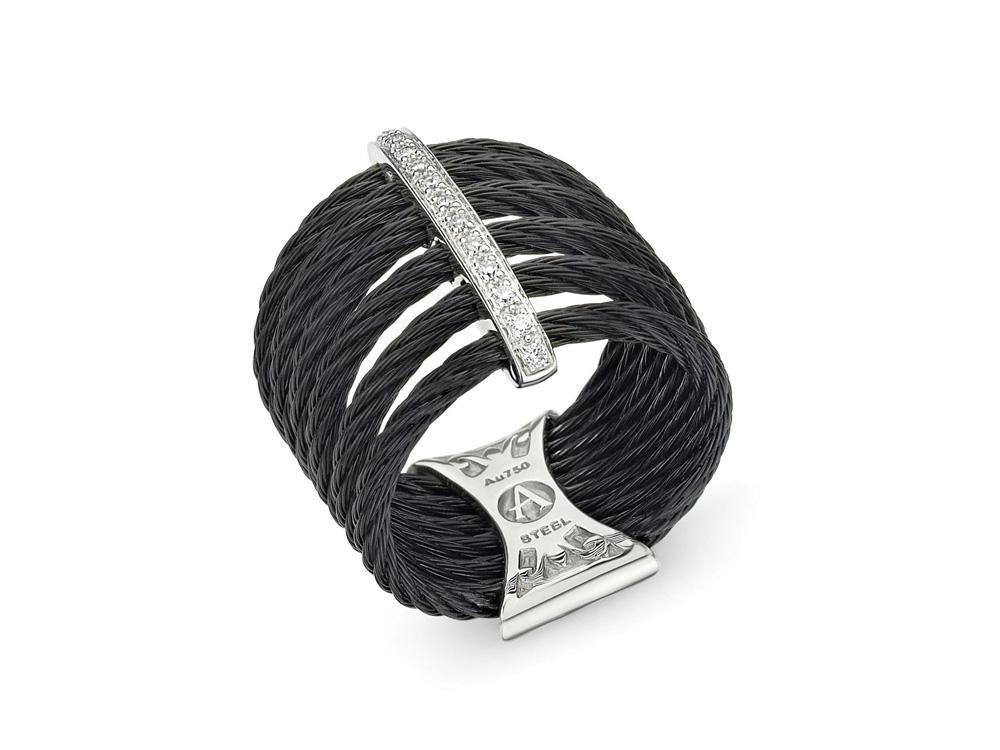 Alor Black cable, 18 karat White Gold, 0.11 total carat weight Diamonds and stainless steel. Imported.
