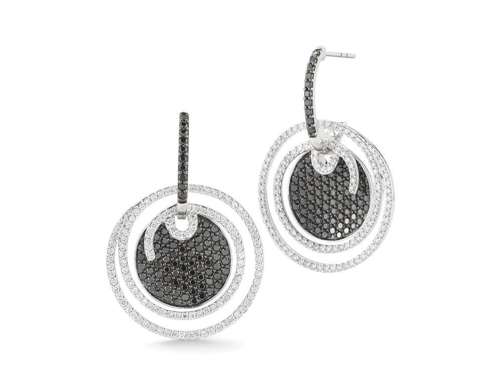 Alor 18 karat White Gold and Diamonds 1.16 total carat weight White, 1.78 total carat weight Black Diamonds. Imported.