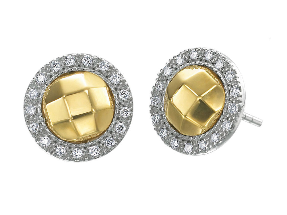 Alor 18 karat faceted Yellow Gold and White Gold with 0.17 total carat weight Diamonds. Imported.