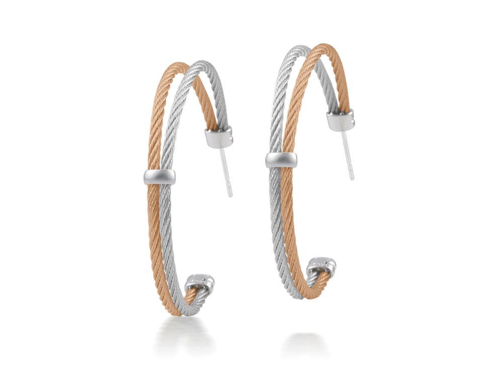 Alor 18 karat White Gold, stainless steel, rose stainless steel cable and grey stainless steel cable. Imported.