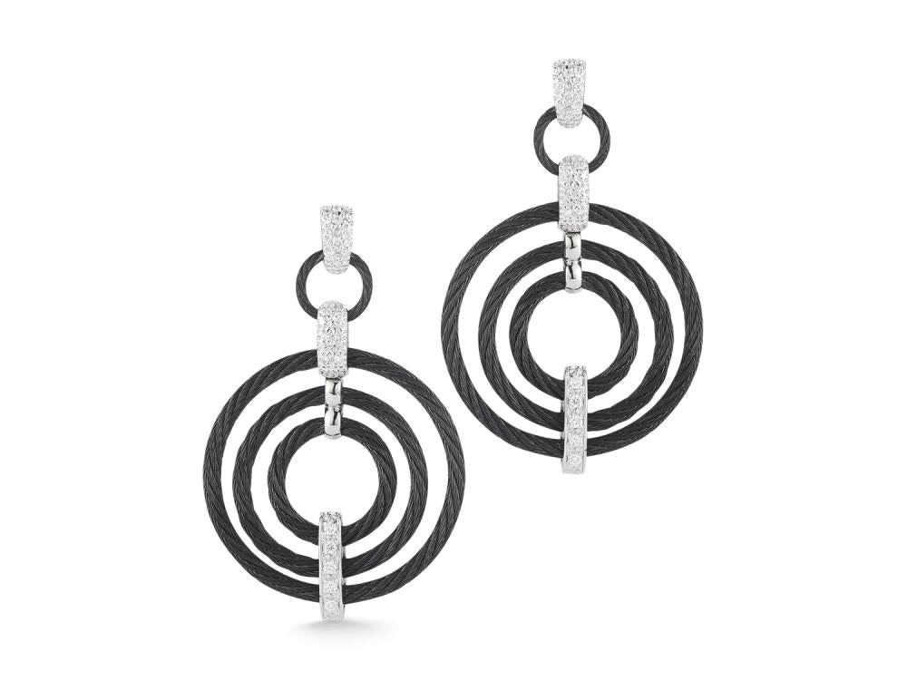 Alor Black cable, 18 karat White Gold, 0.25 total carat weight Diamonds and stainless steel. Imported.