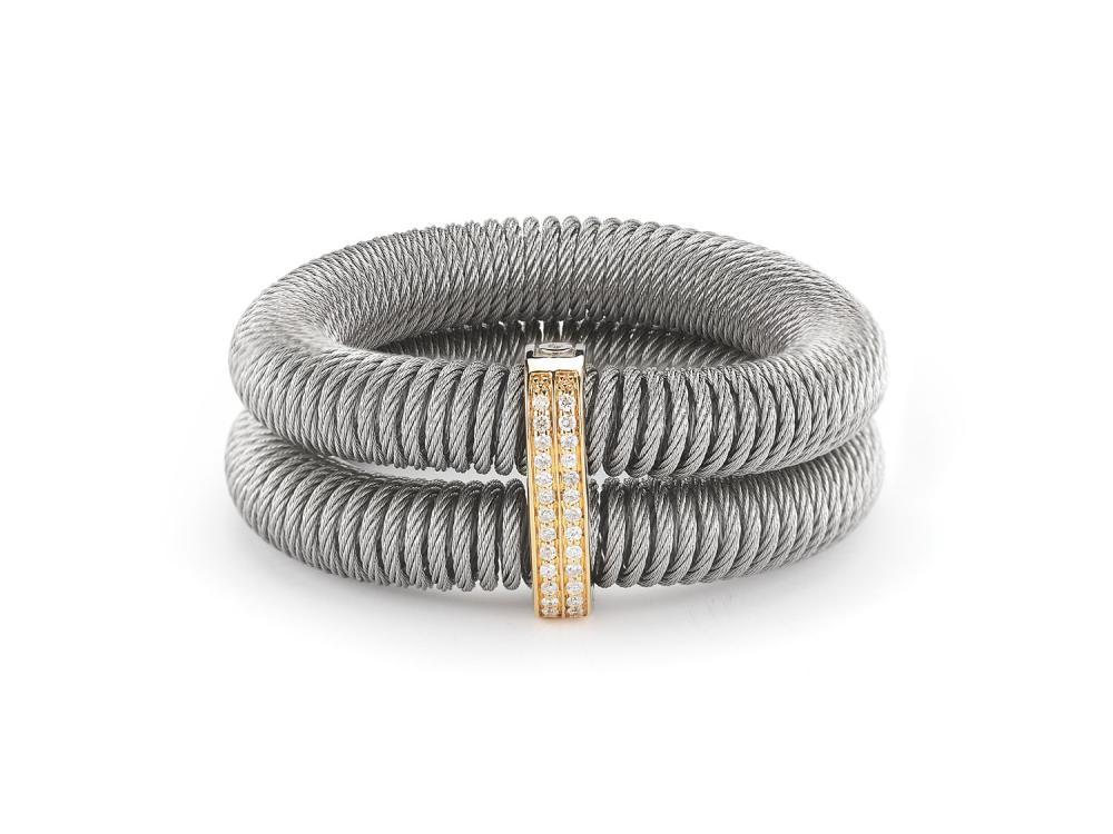 Alor Grey cable, 18 karat Yellow Gold, 0.24 total carat weight Diamonds and stainless steel. Imported.