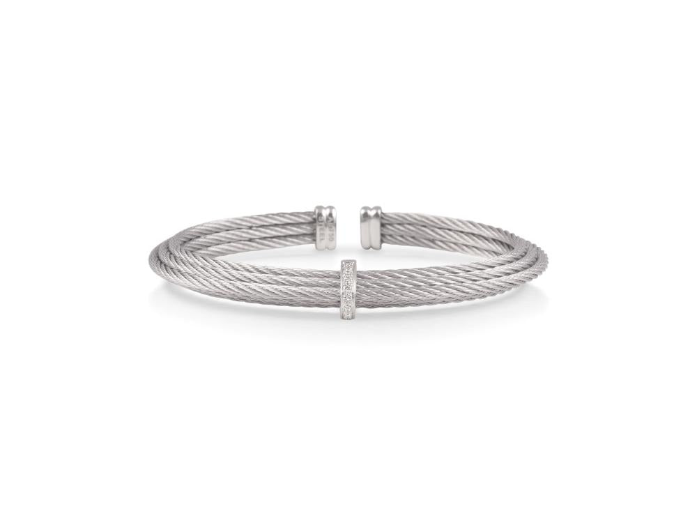 Alor Grey cable 6 row, 18 karat White Gold, 0.06 total carat weight Diamonds and stainless steel. Imported.