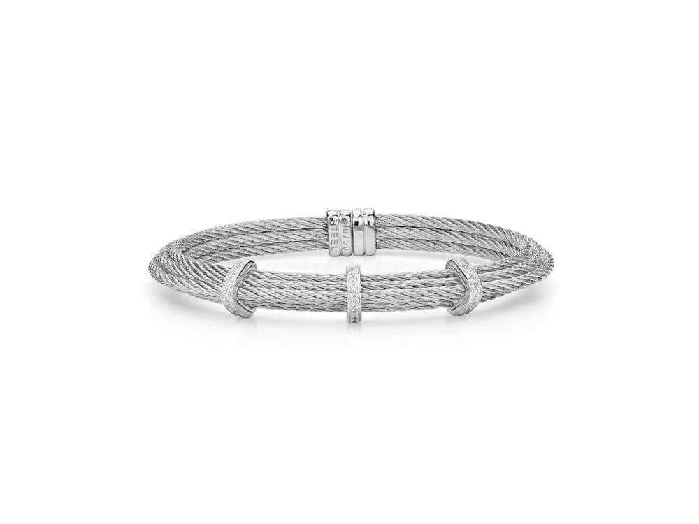 Alor Grey cable 6 row, 18 karat White Gold, 0.17 total carat weight Diamonds and stainless steel. Imported.