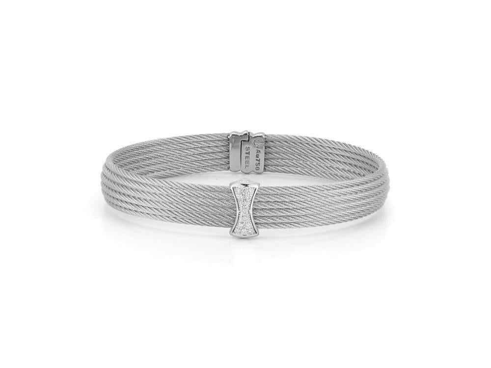 Alor Grey cable, 18 karat White Gold, 0.12 total carat weight Diamonds and stainless steel. Imported.