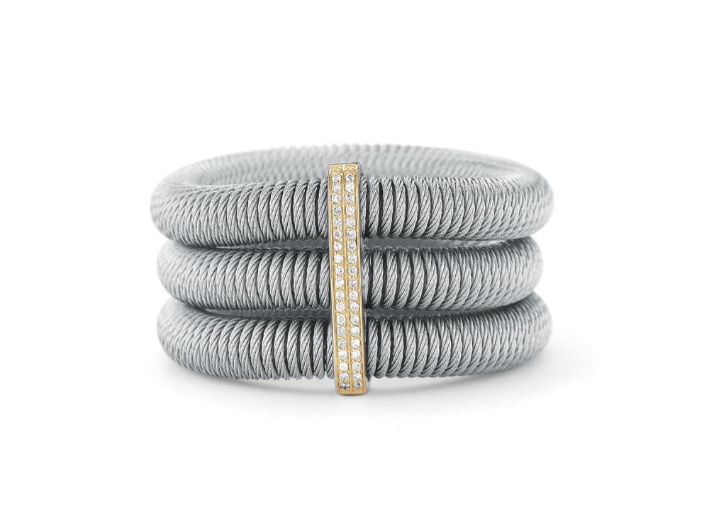 Alor Grey cable, 18 karat Yellow Gold, 0.35 total carat weight Diamonds and stainless steel. Imported.