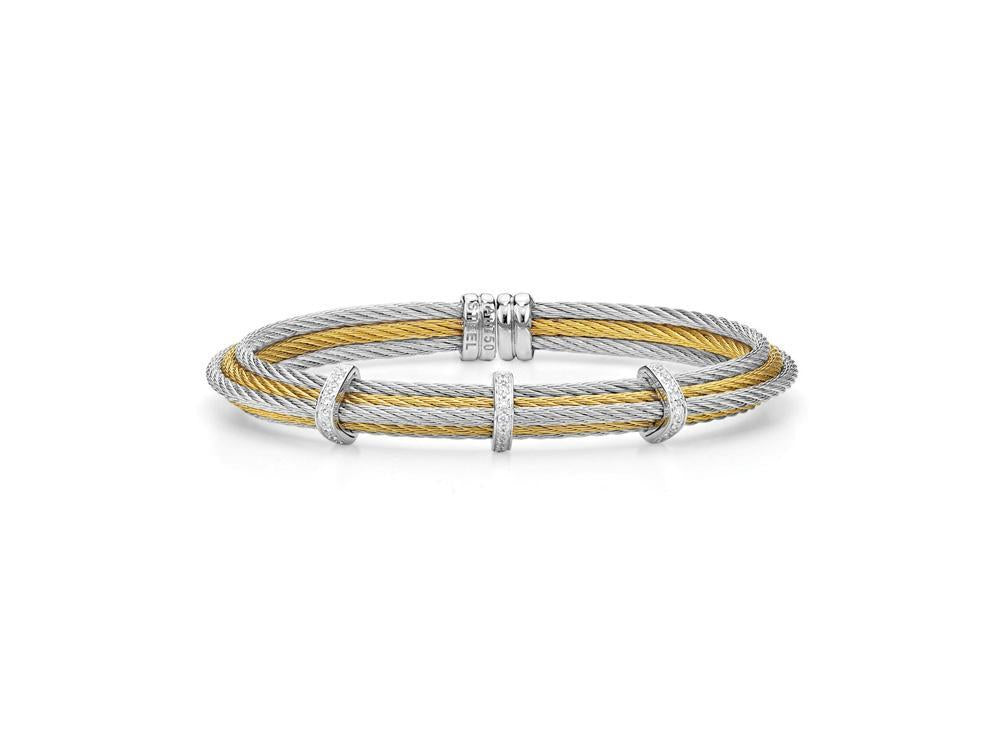 Alor Yellow cable and grey cable 6 row, 18 karat White Gold, 0.17 total carat weight Diamonds with stainless steel. Imported.