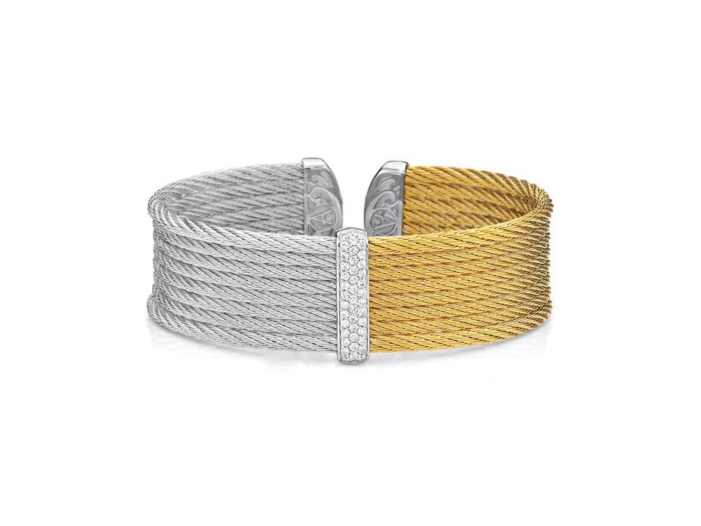 Alor Yellow cable and grey cable, 18 karat White Gold, 0.34 total carat weight Diamonds with stainless steel. Imported.