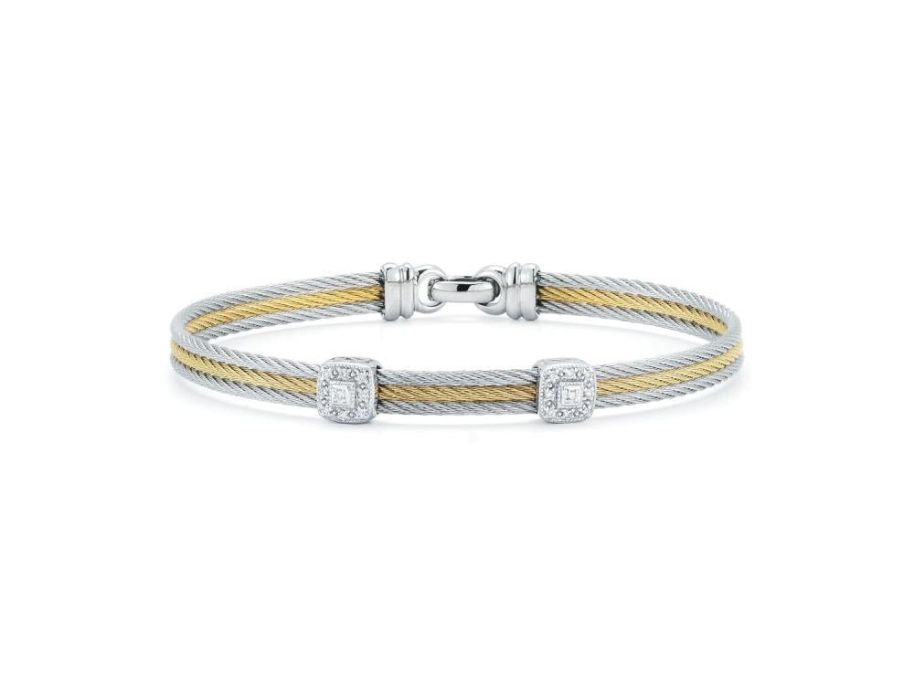 Alor Grey cable and yellow cable 3 row 1.6 mm, 18 karat White Gold, 0.09 total carat weight Diamonds with stainless steel. Imported.