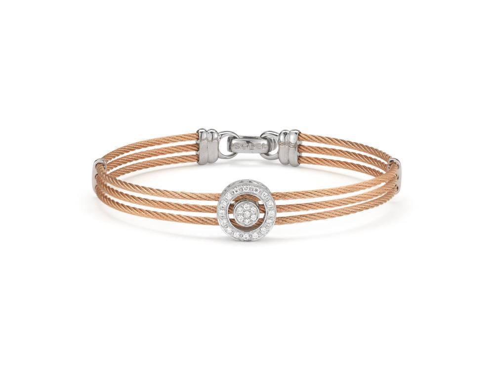 Alor Rose cable 3 row 1.6mm, 18 karat White Gold, 0.21 total carat weight Diamonds and stainless steel. Imported.