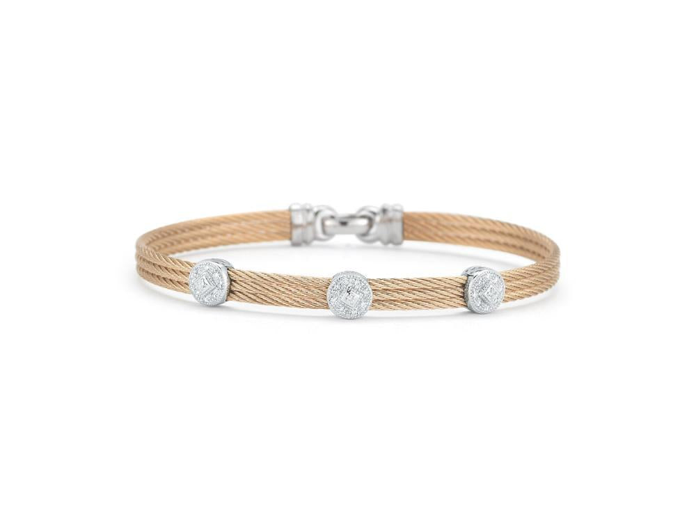 Alor Rose cable 3 row 1.6 mm, 18 karat White Gold, 0.14 total carat weight Diamonds and stainless steel. Imported.