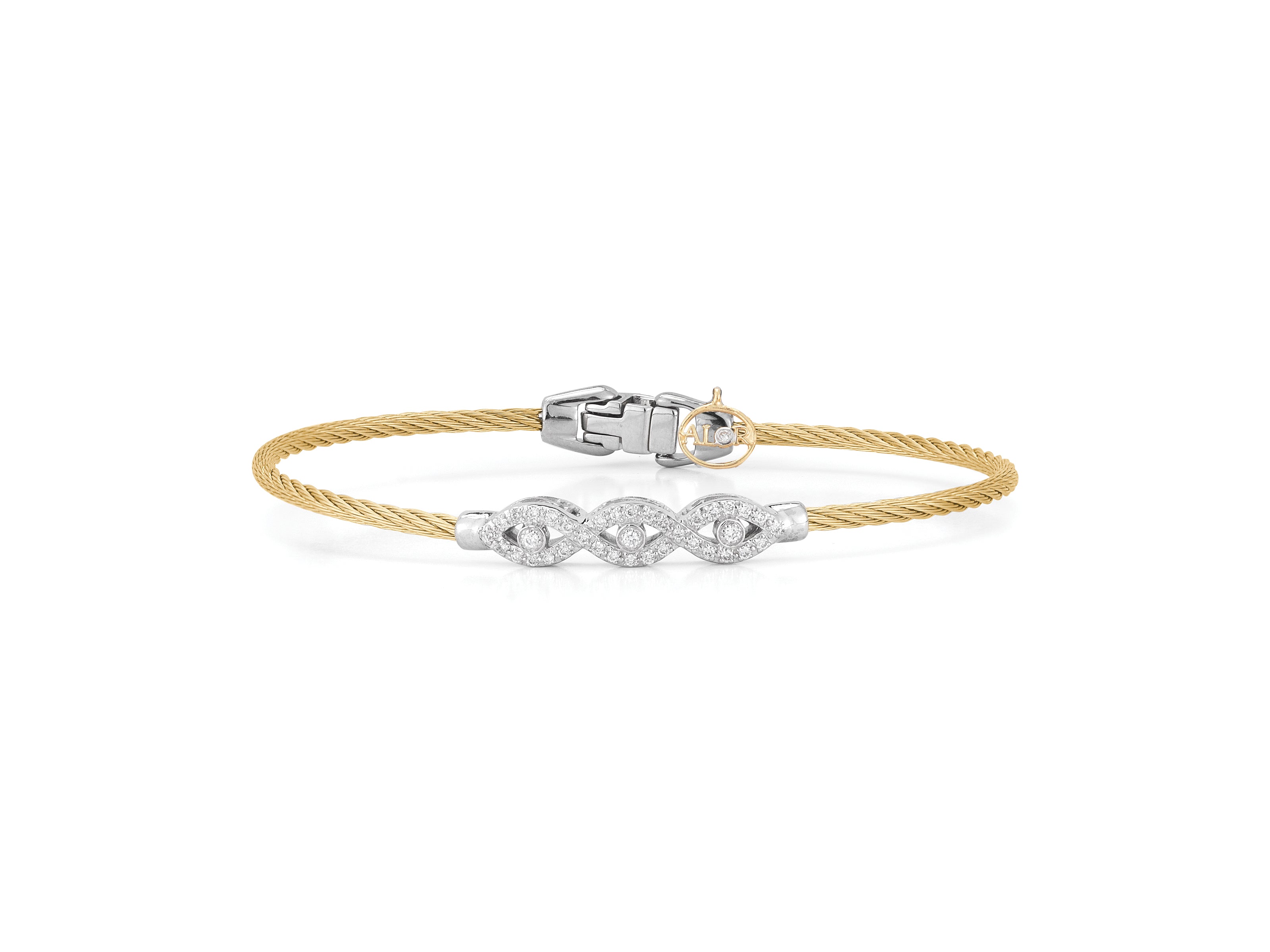 Alor Yellow cable, 18 karat White Gold, 0.32 total carat weight Diamonds with stainless steel. Imported.