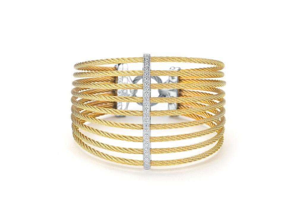 Alor Yellow cable, 18 karat White Gold and Yellow Gold, 0.20 total carat weight Diamonds and stainless steel. Imported.