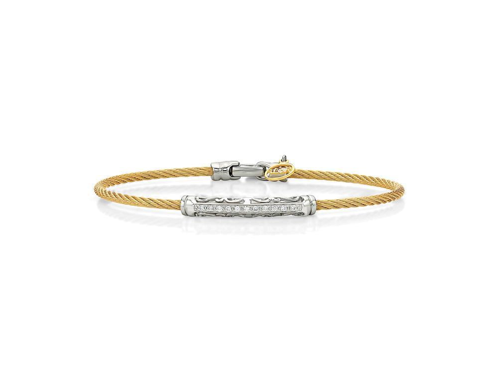 Alor Yellow cable, 18 karat White Gold and Yellow Gold, 0.10 total carat weight Diamonds and stainless steel. Imported.