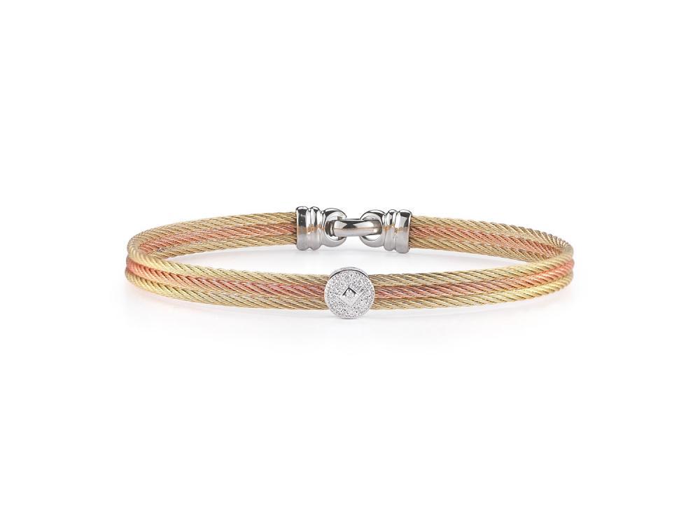 Alor Yellow cable and rose cable, 18 karat White Gold, 0.05 total carat weight Diamonds with stainless steel. Imported.