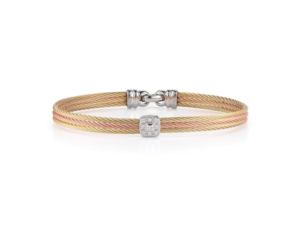 Alor Yellow cable and rose cable, 18 karat White Gold, 0.05 total carat weight Diamonds and stainless steel. Imported.