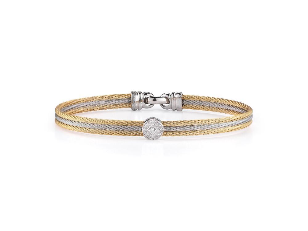 14K WHITE GOLD AND STAINLESS STEEL YELLOW AND GREY SINGLE STATION CABLE BRACELET