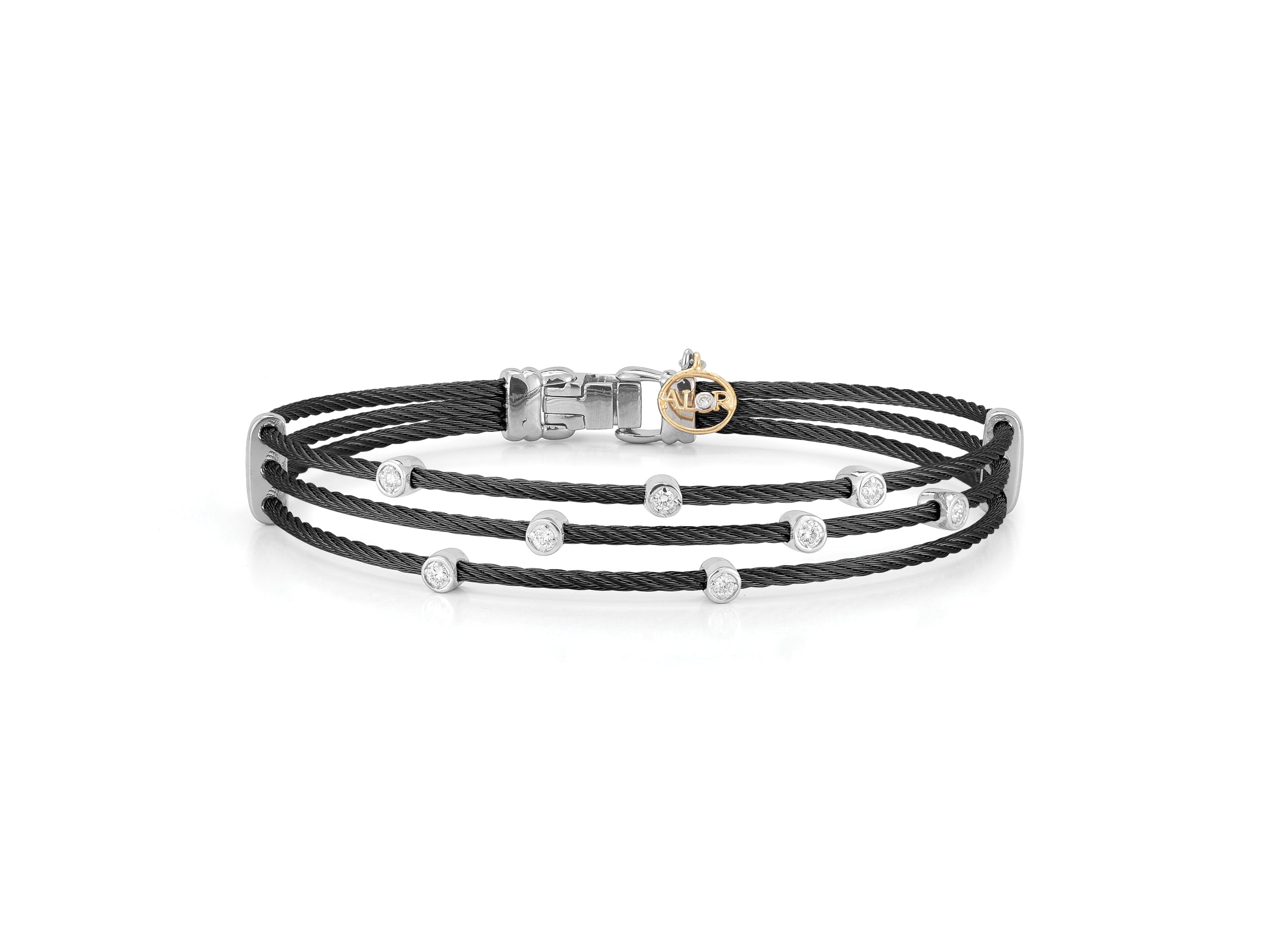 Alor Black cable, 18 karat White Gold, 0.18 total carat weight Diamonds with stainless steel. Imported.