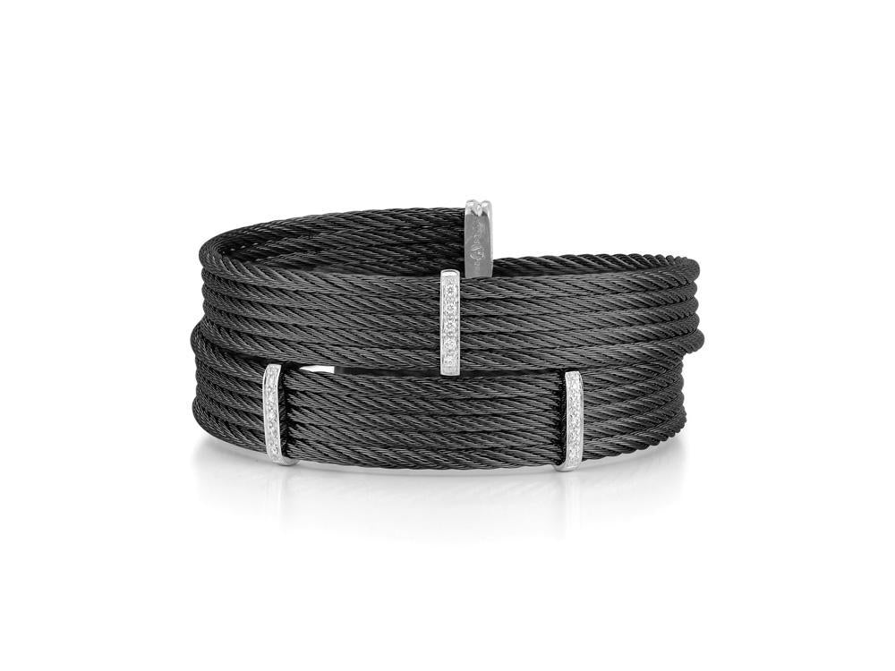 Alor Black cable, 18 karat White Gold, 0.12 total carat weight Diamonds with stainless steel. Imported.
