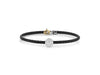Alor Black 3mm cable, 18 karat White Gold and Yellow Gold, 0.09 total carat weight Diamonds and stainless steel. Imported.