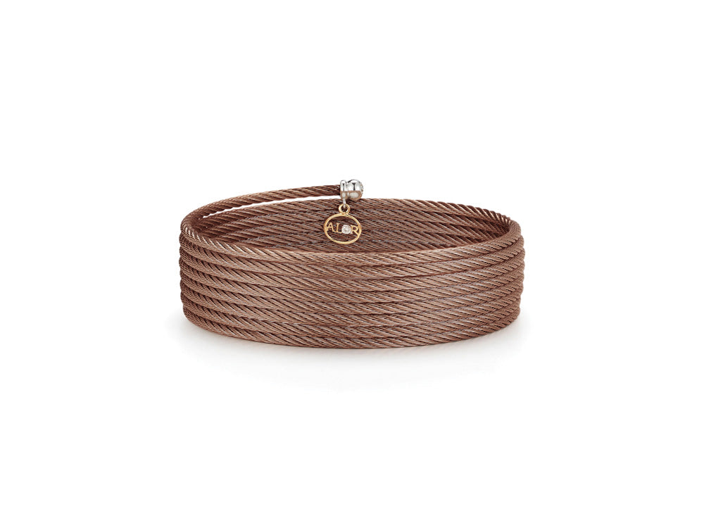 Alor Bronze 2mm cable, 18 karat Yellow Gold, 0.01 total carat weight Diamond and stainless steel. Imported.