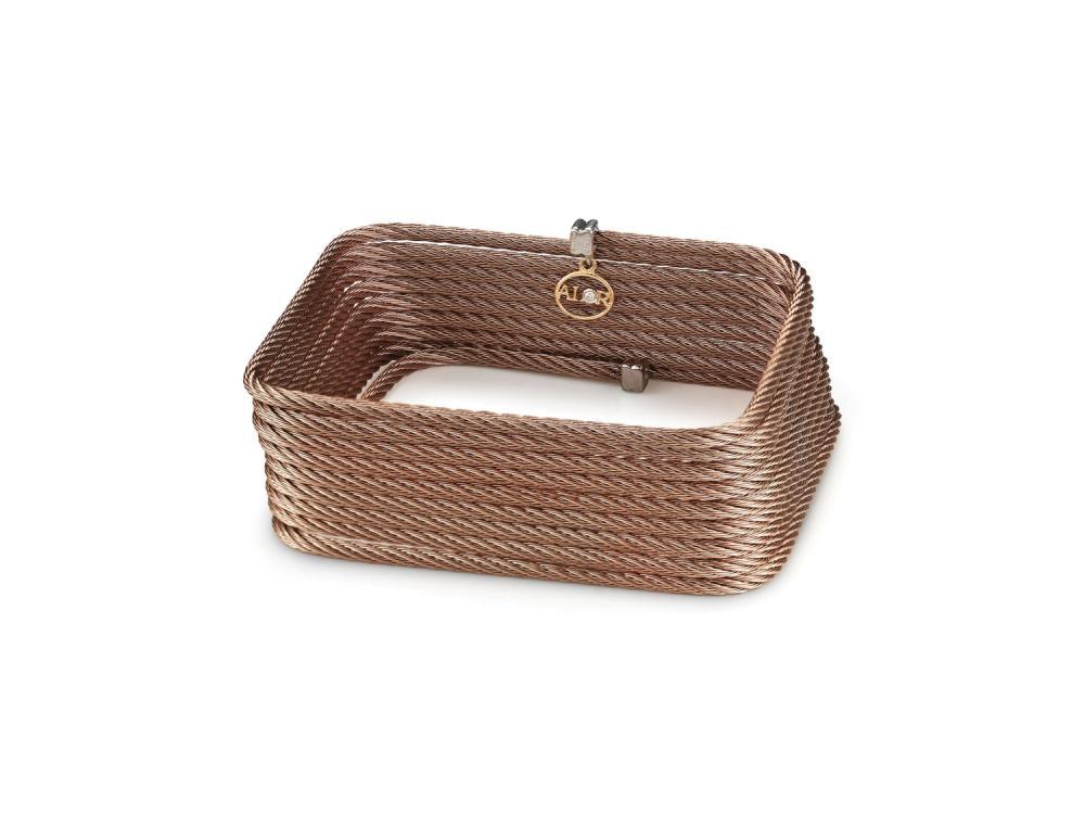 Alor Bronze 2mm cable, 18 karat Yellow Gold, 0.01 total carat weight Diamond and stainless steel. Imported.