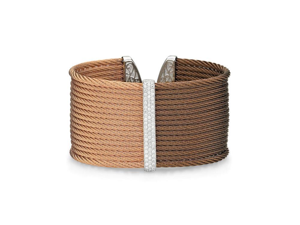 Alor Bronze cable and rose cable, 18 karat White Gold, 0.56 total carat weight Diamonds with stainless steel. Imported.
