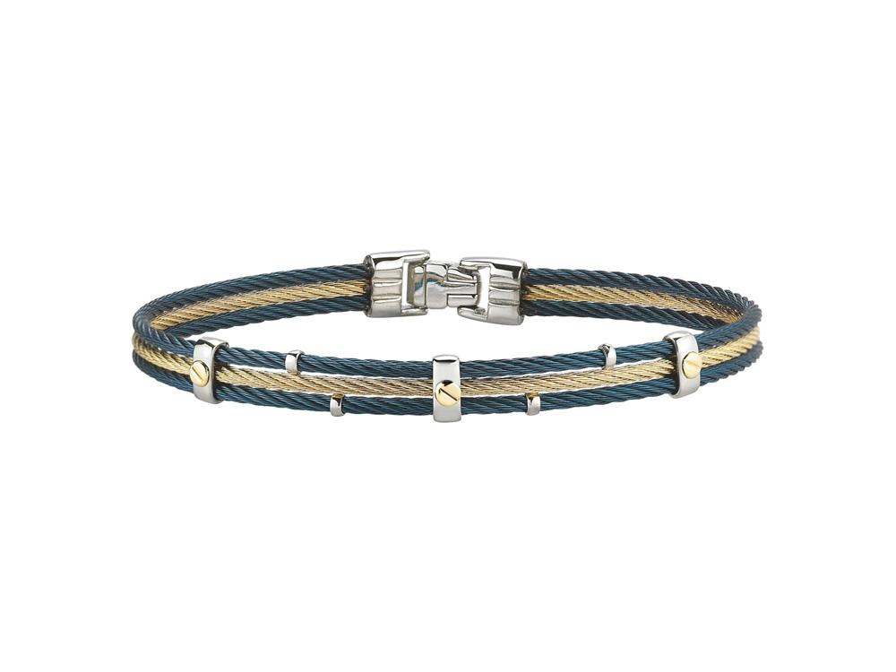 Alor Blue cable and yellow cable 3 row 2mm, 18 karat Yellow Gold with stainless steel. Imported.