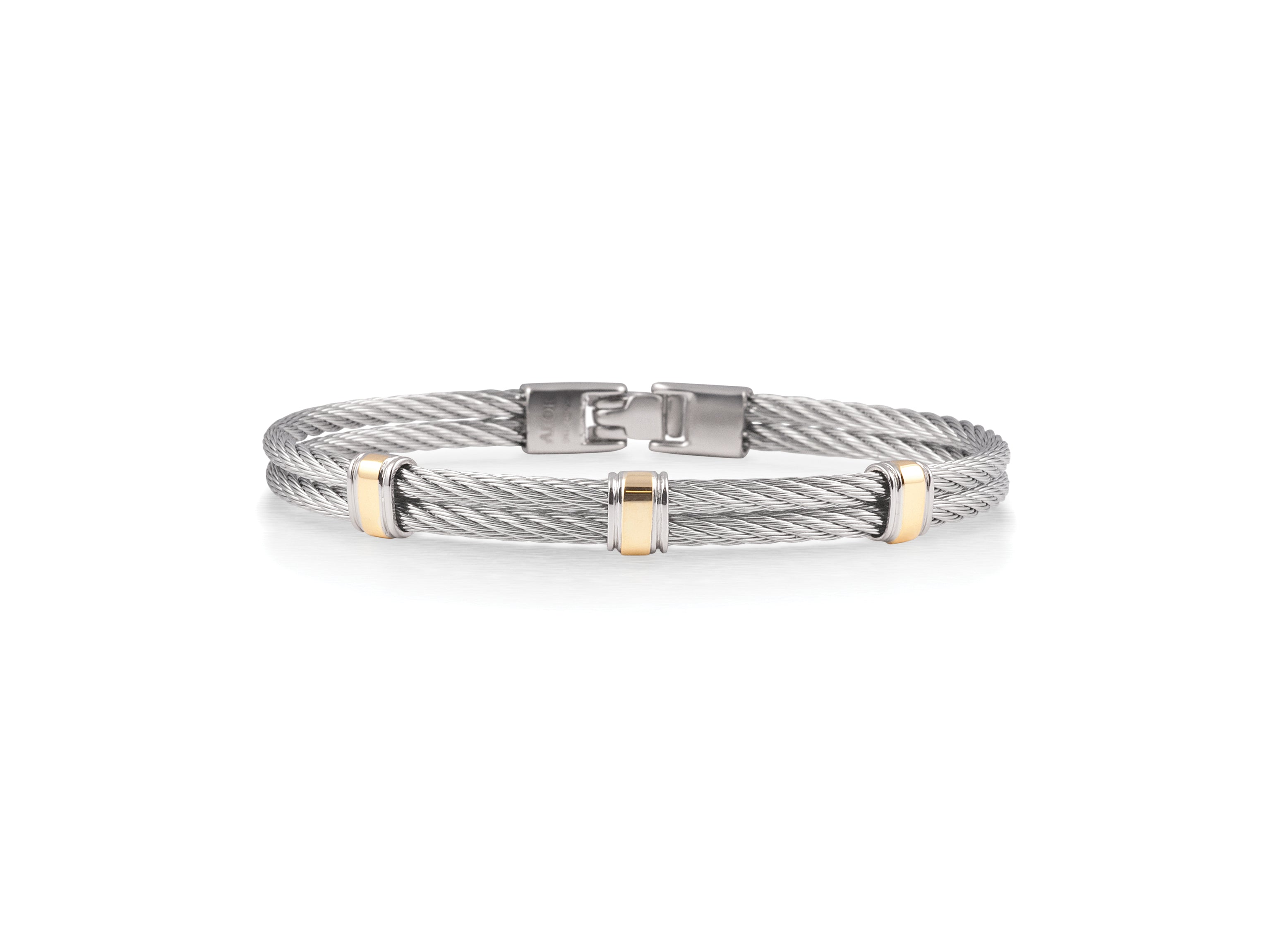 Alor Grey cable, 18 karat Yellow Gold and stainless steel. Imported.
