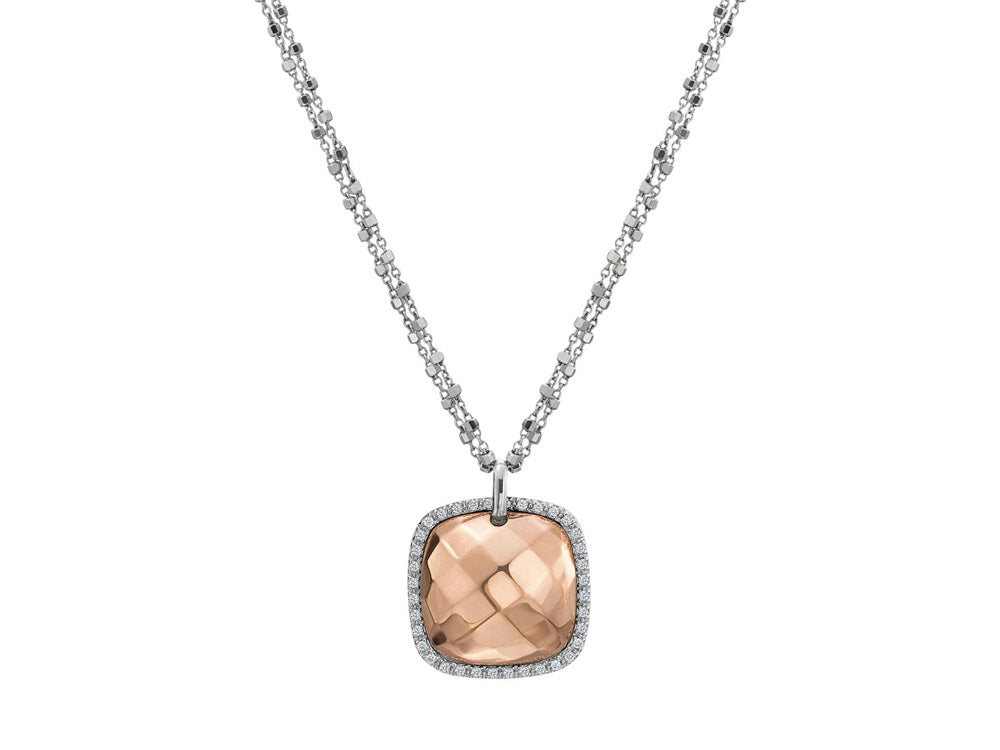 Alor 18 karat faceted Rose Gold and White Gold with 0.18 total carat weight Diamonds on double White Gold diamond cut chain. Imported.