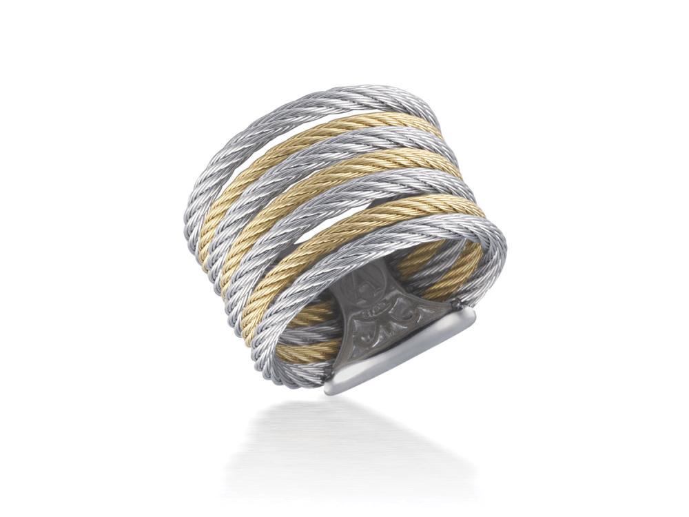 Alor Yellow cable and grey cable 7 row (3) 1.6mm & (4) 2.5mm, 18 karat Yellow Gold with stainless steel. Imported.