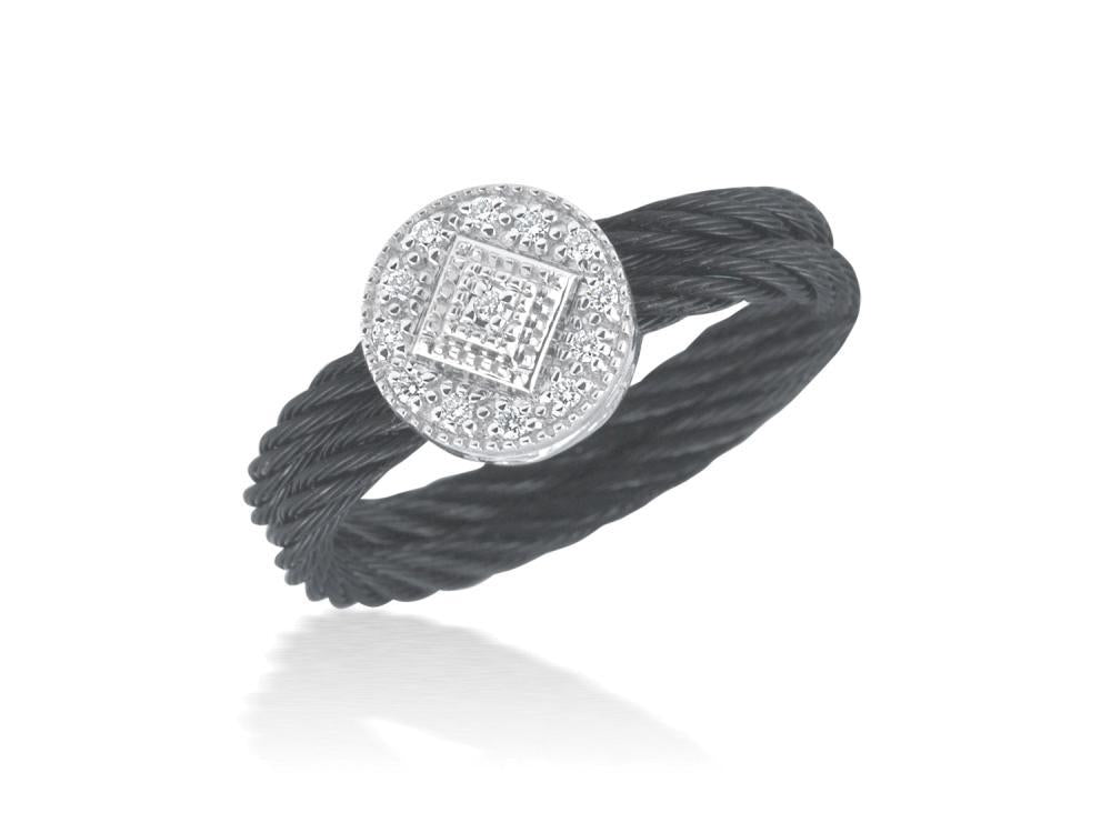 Alor Black cable with 18 karat White Gold, 0.07 total carat weight Diamonds and stainless steel. Imported.