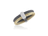 Alor Black cable and yellow cable 2 row 2.5mm, 18 karat White Gold, 0.05 total carat weight Diamonds with stainless steel. Imported.