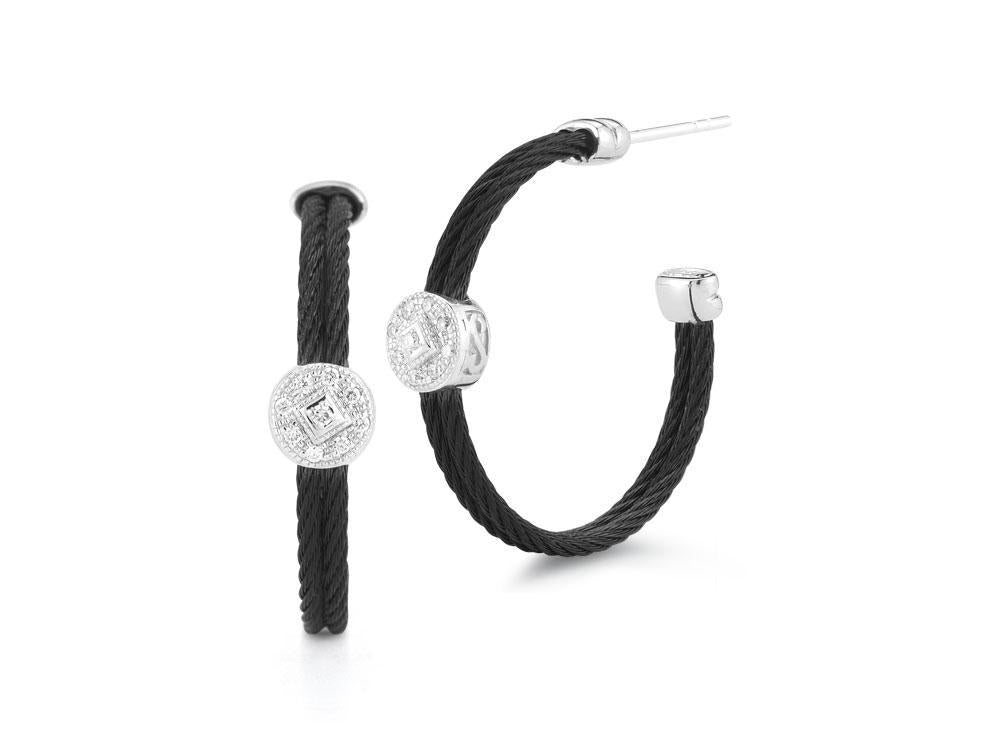 Alor Black cable 2 rows 1.6 mm, 18 karat White Gold, 0.09 total carat weight Diamonds and stainless steel. Imported.