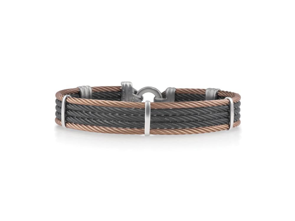 Alor Black cable and bronze cable 5 row 2.5mm, 18 karat Yellow Gold with stainless steel. Imported.