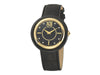Alor 42mm Stainless Steel Swiss made with Black PVD/Yellow PVD bezel, double curved sapphire crystal and black sunburst dial with yellow Roman markers, 0.04 total carat weight Diamonds (8 stones) on a black genuine leather strap. Water resistant to 3ATM.