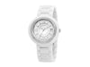 Alor 37mm Stainless Steel Swiss made with White Ceramic/Stainless Steel bezel, Cabochon Crown, double curved sapphire crystal and MOP/white dial with silver Roman markers, 0.53 total carat weight Diamonds (66 stones) on a white ceramic bracelet. Water re