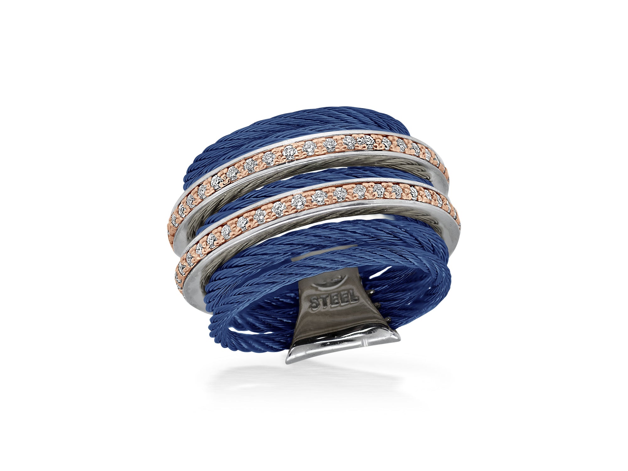 ALOR 18K ROSE GOLD, STAINLESS STEEL & DIAMOND BLUE CABLE RING
