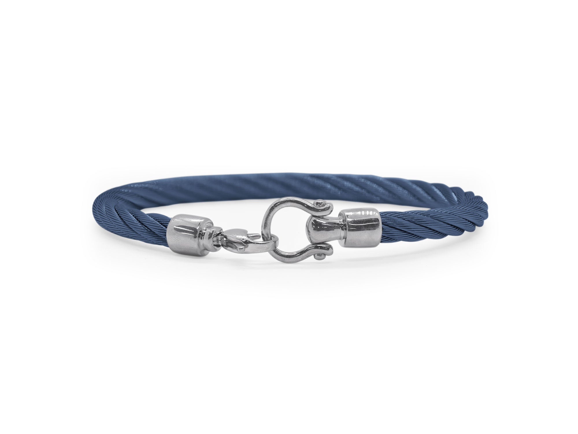 Blue cable with stainless steel.