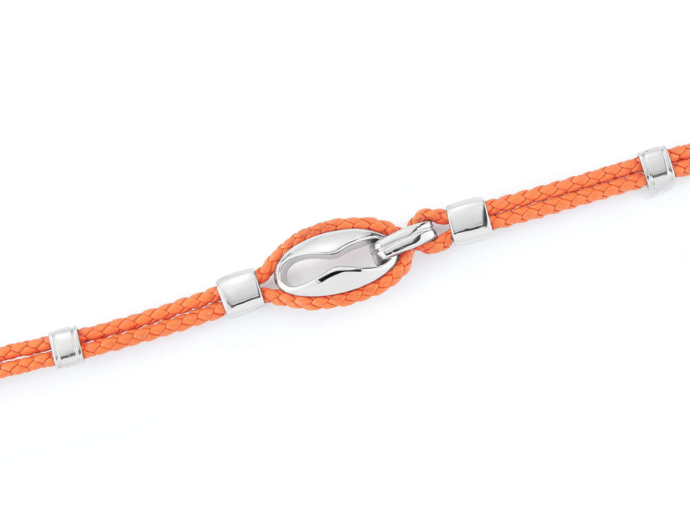 Orange braided leather and stainless steel. Imported.