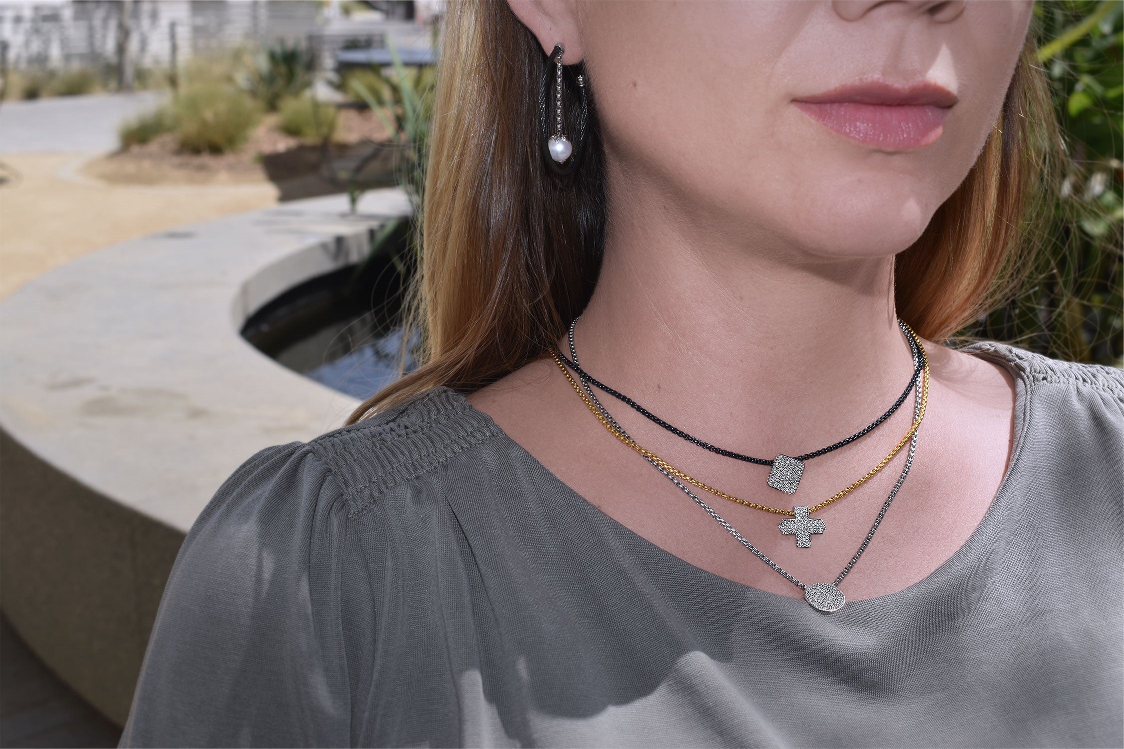 Grey Chain Taking Shapes Disc Necklace with 14K Gold & Diamonds