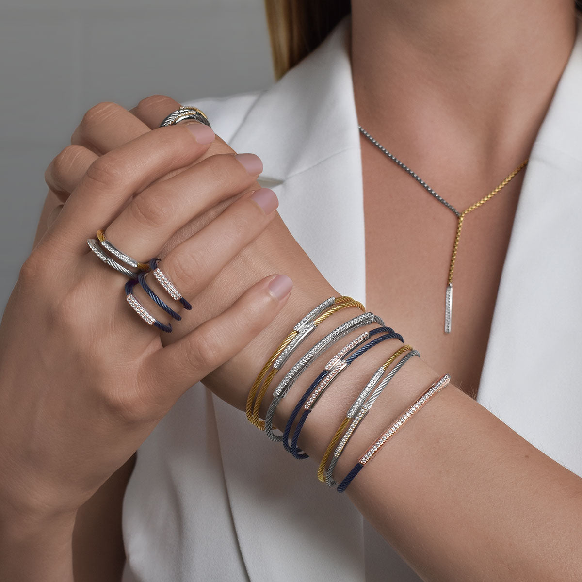 Blueberry cable, 18kt Rose Gold, with 0.27 total carat weight diamonds and stainless steel.