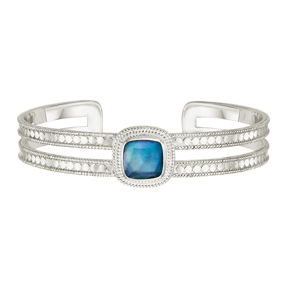 Ana Beck Sterling Silver Lapis Square Double Bar Cuff - Silver